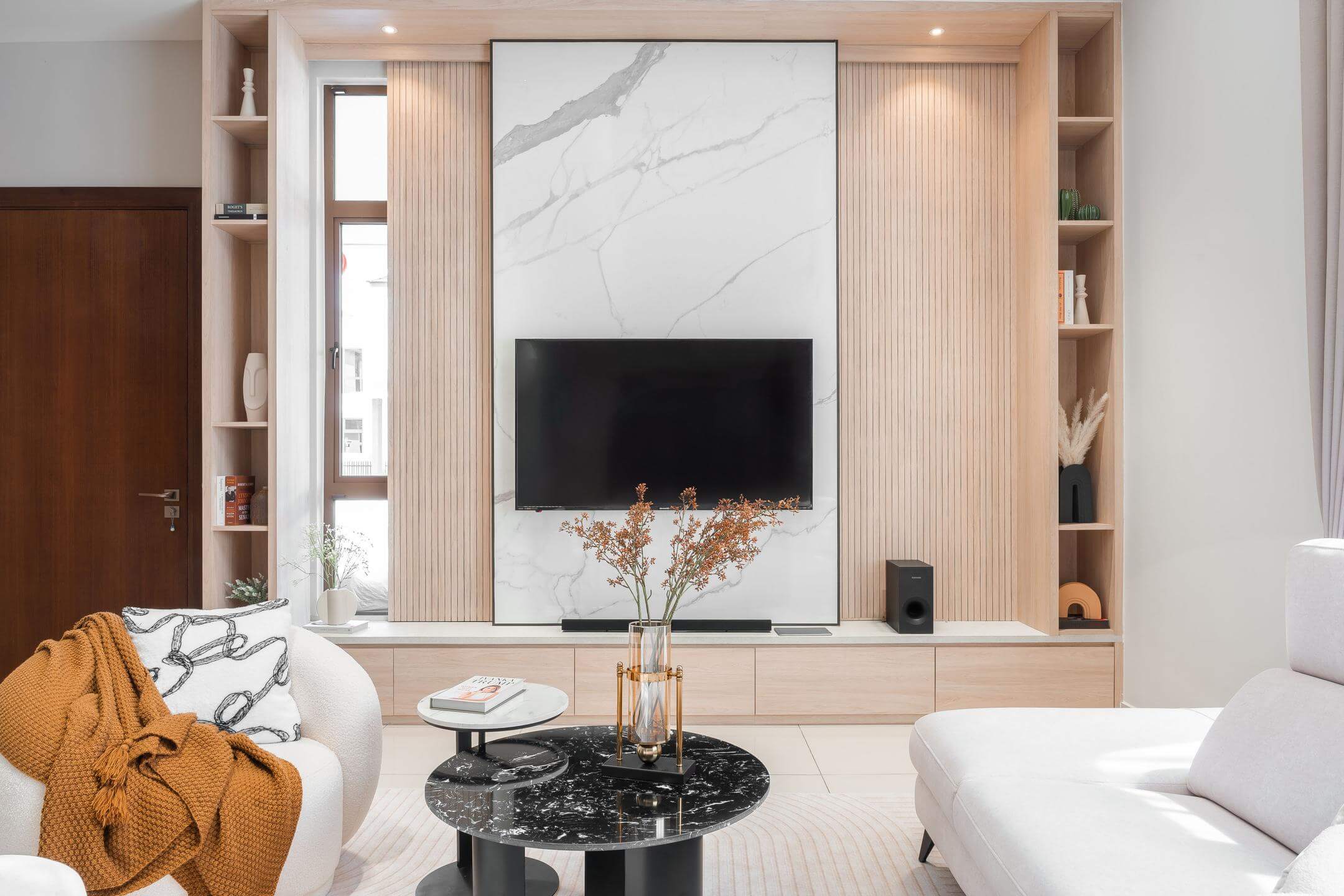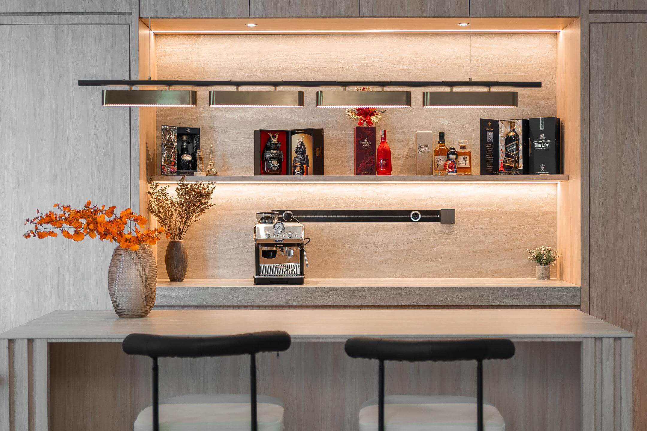 Wood plays a central role in our design, reflecting the Japanese principle of “”wabi-sabi”” — finding beauty in imperfection. Natural wood elements are used throughout the space, adding warmth and a connection to nature. The grain of the wood is celebrated, showcasing its unique patterns and textures.