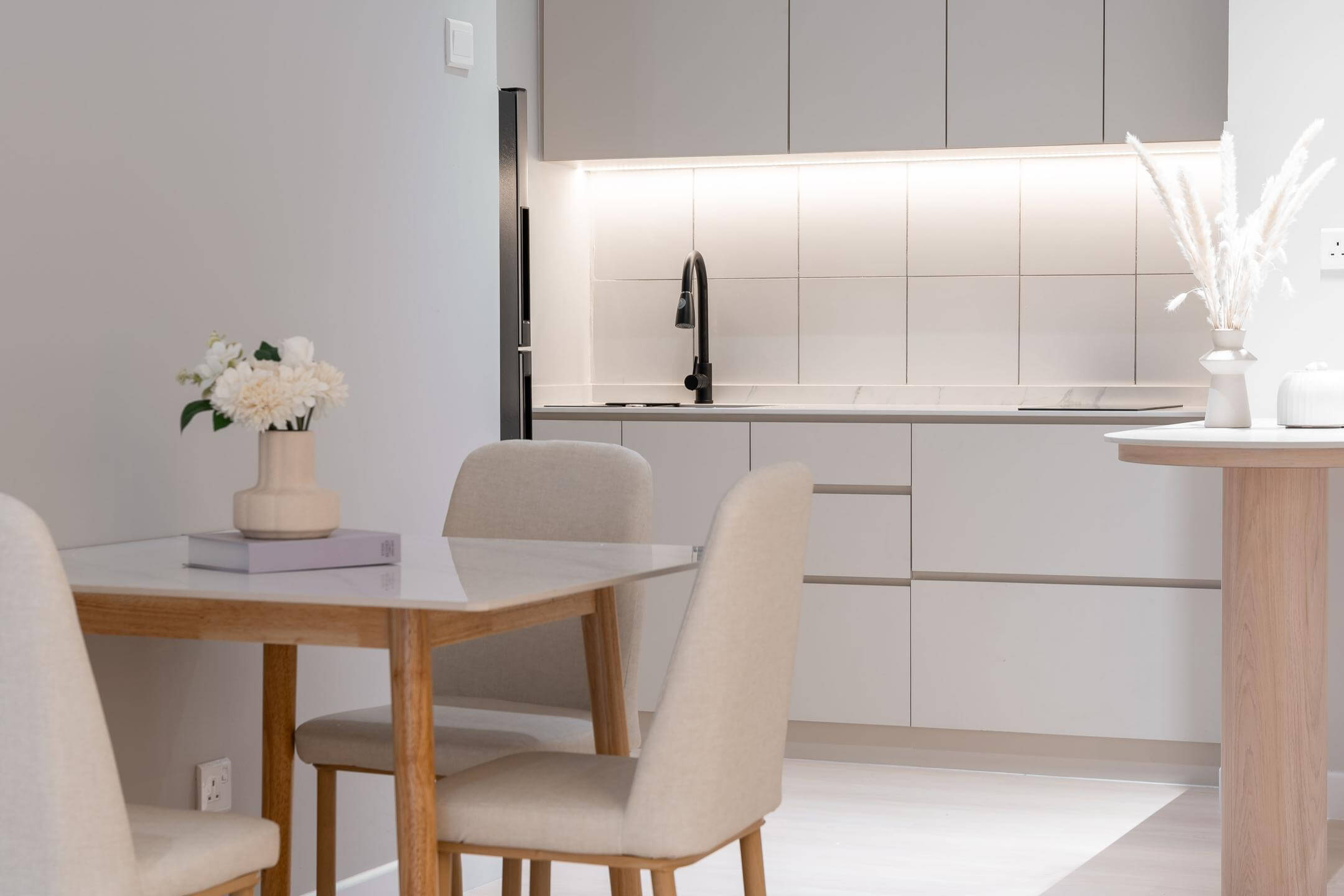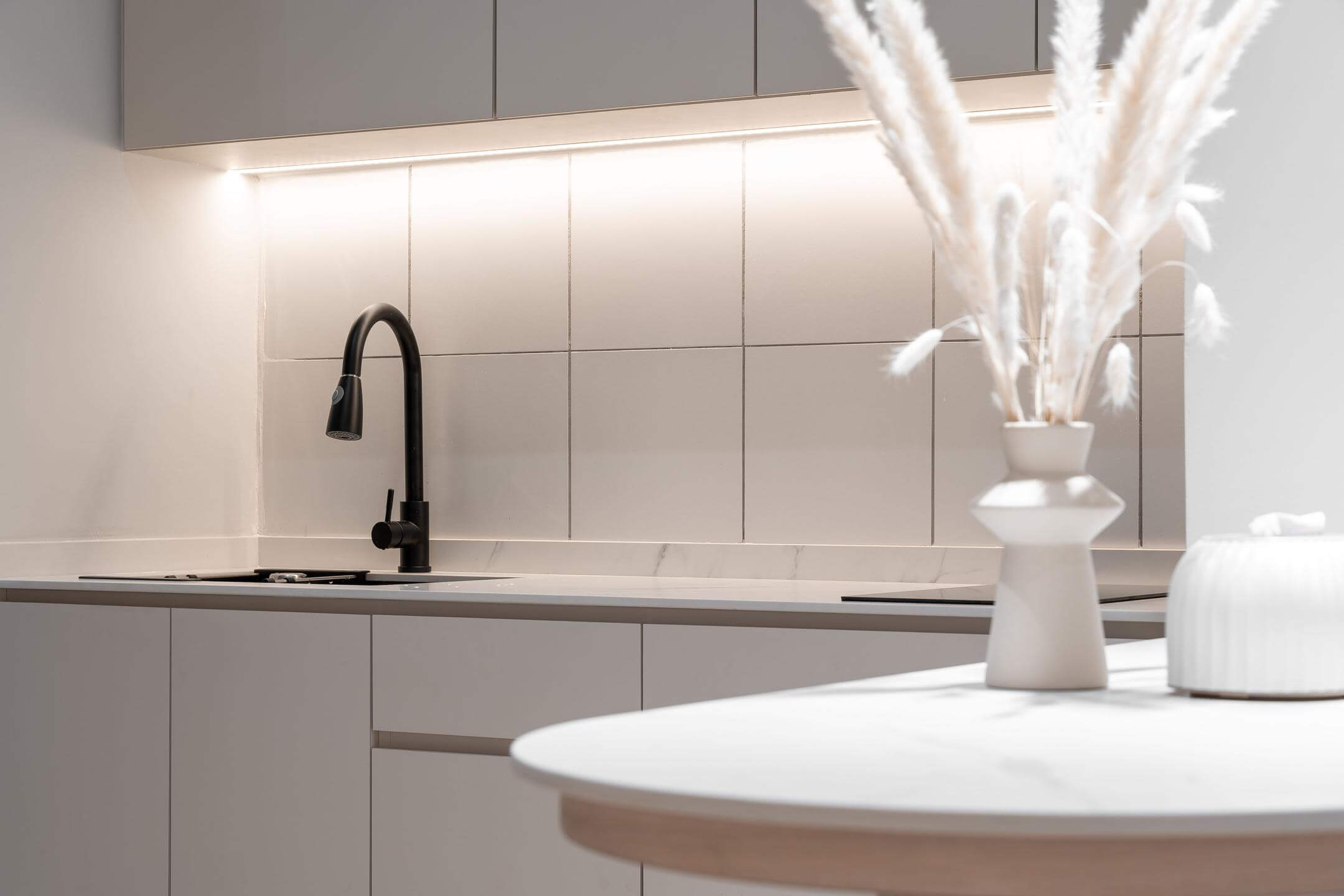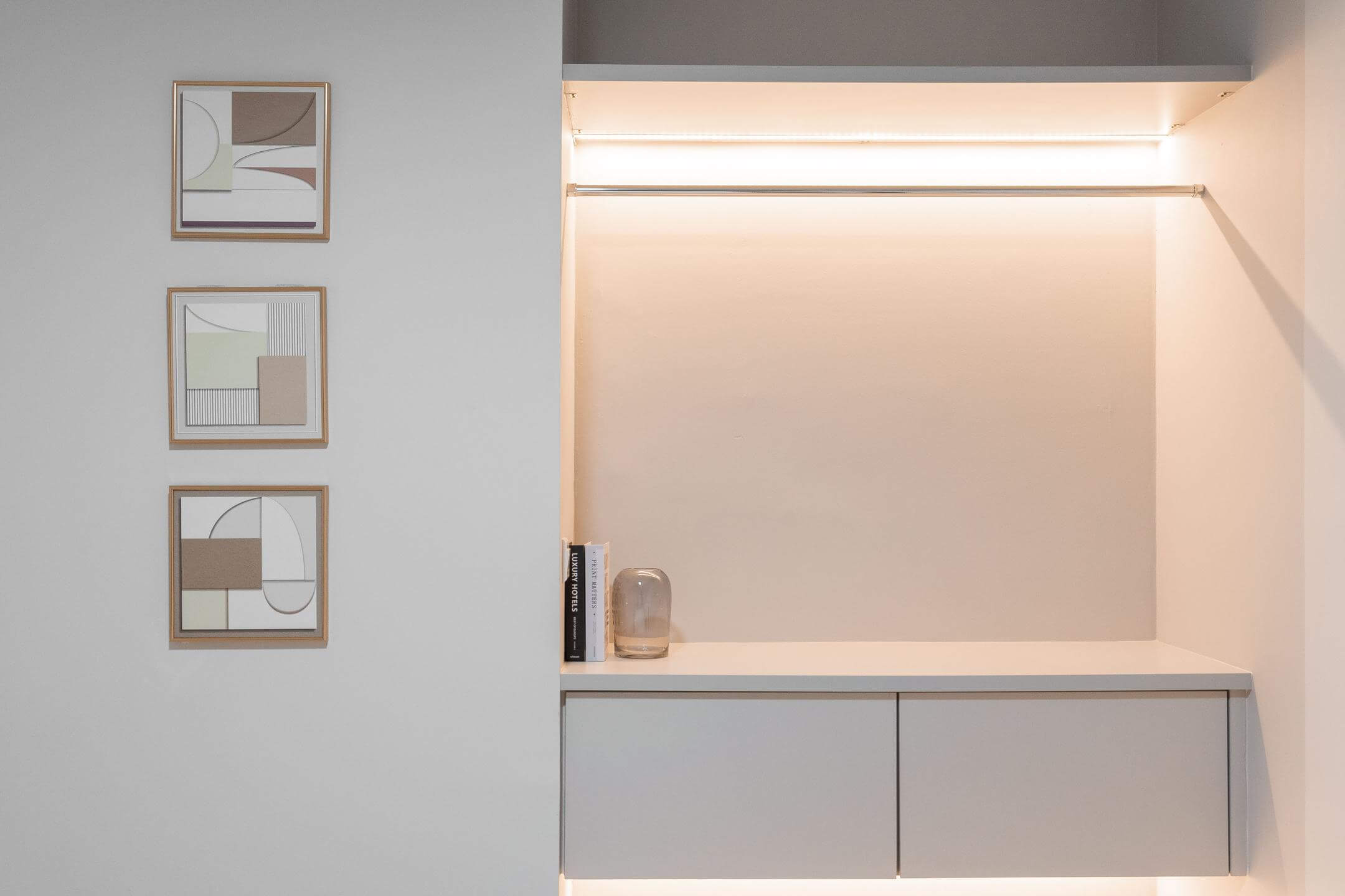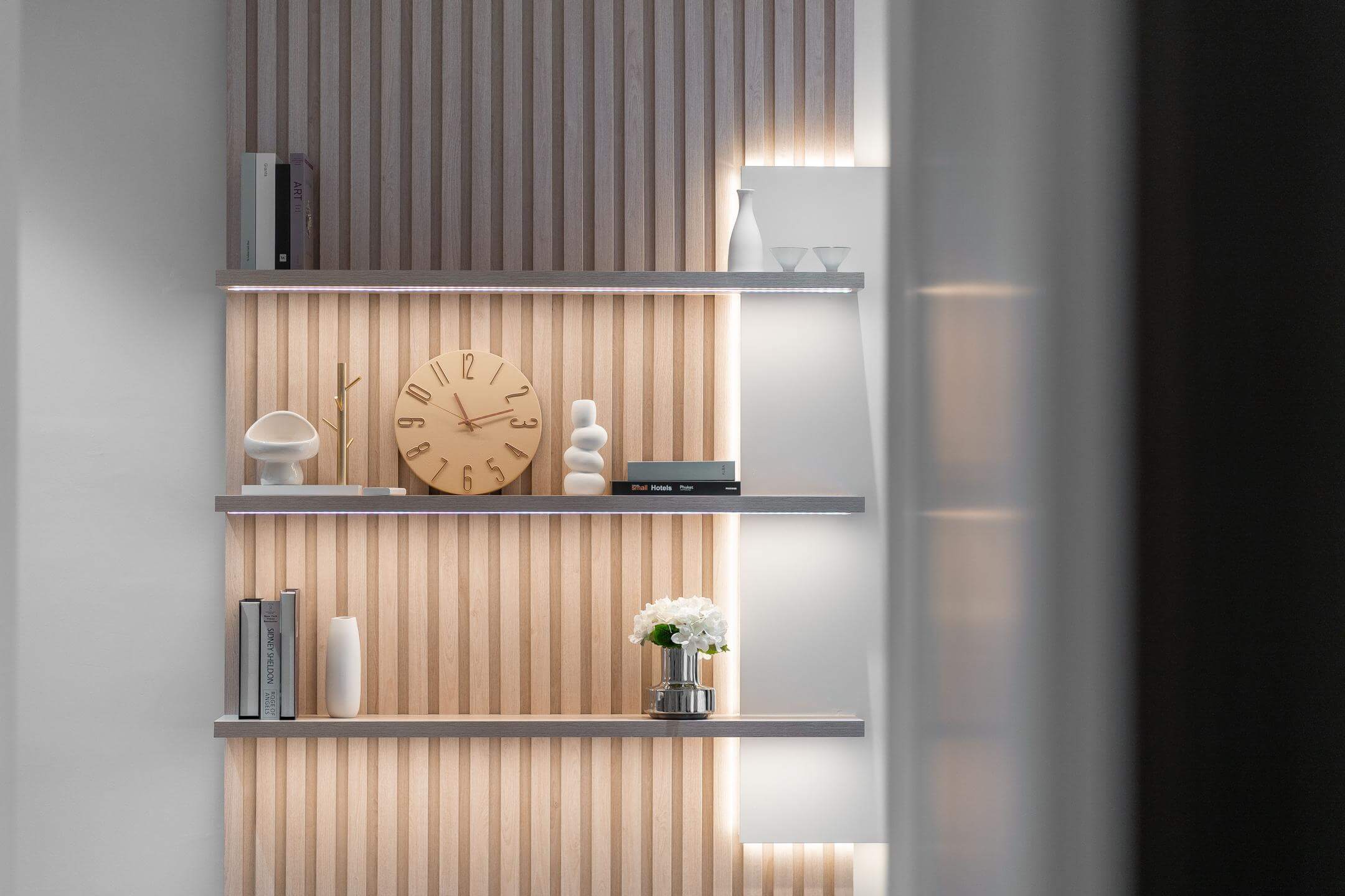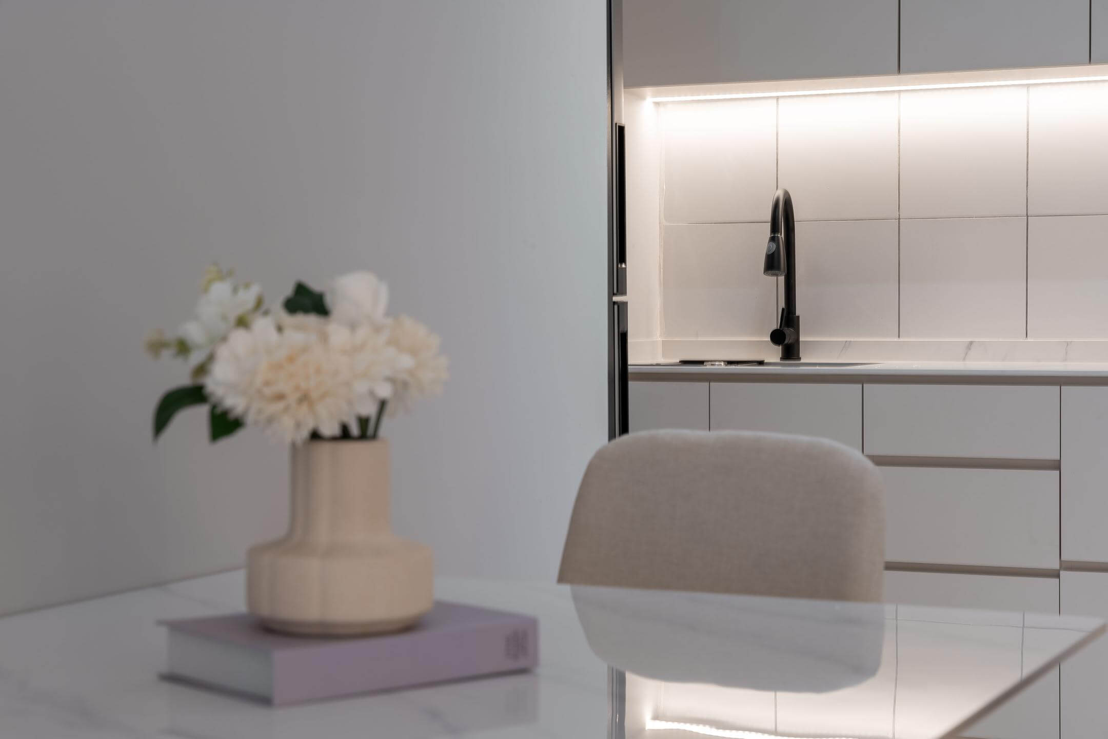 Lighting plays a key role in transitioning the space between function and relaxation, while subtle decorative details were meticulously selected to harmonize the overall aesthetic, creating a seamless and inviting atmosphere throughout the home.