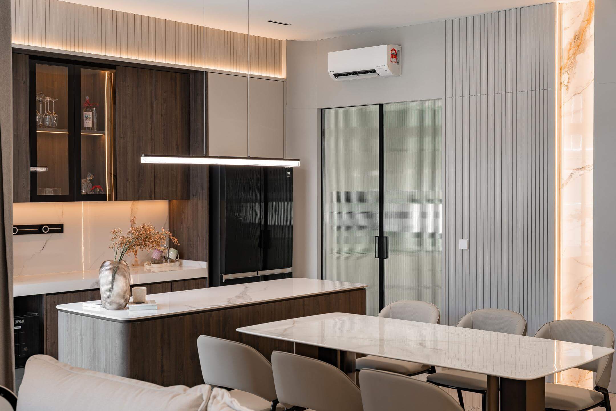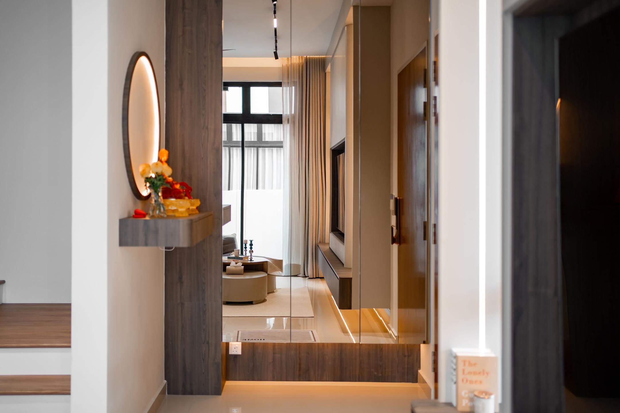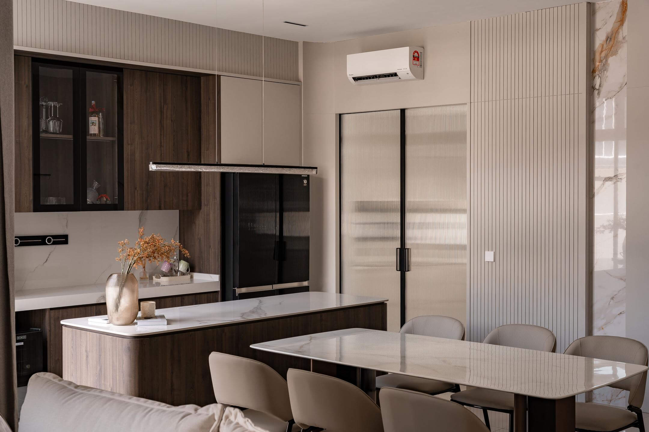 Shadow & Still is a celebration of quiet luxury — where form meets feeling, and every line carries intention. This modern interior embraces a muted palette layered with rich, dark wood textures to evoke a sense of grounded sophistication. The design is anchored in stillness, allowing light and shadow to dance across clean surfaces and sculpted forms.