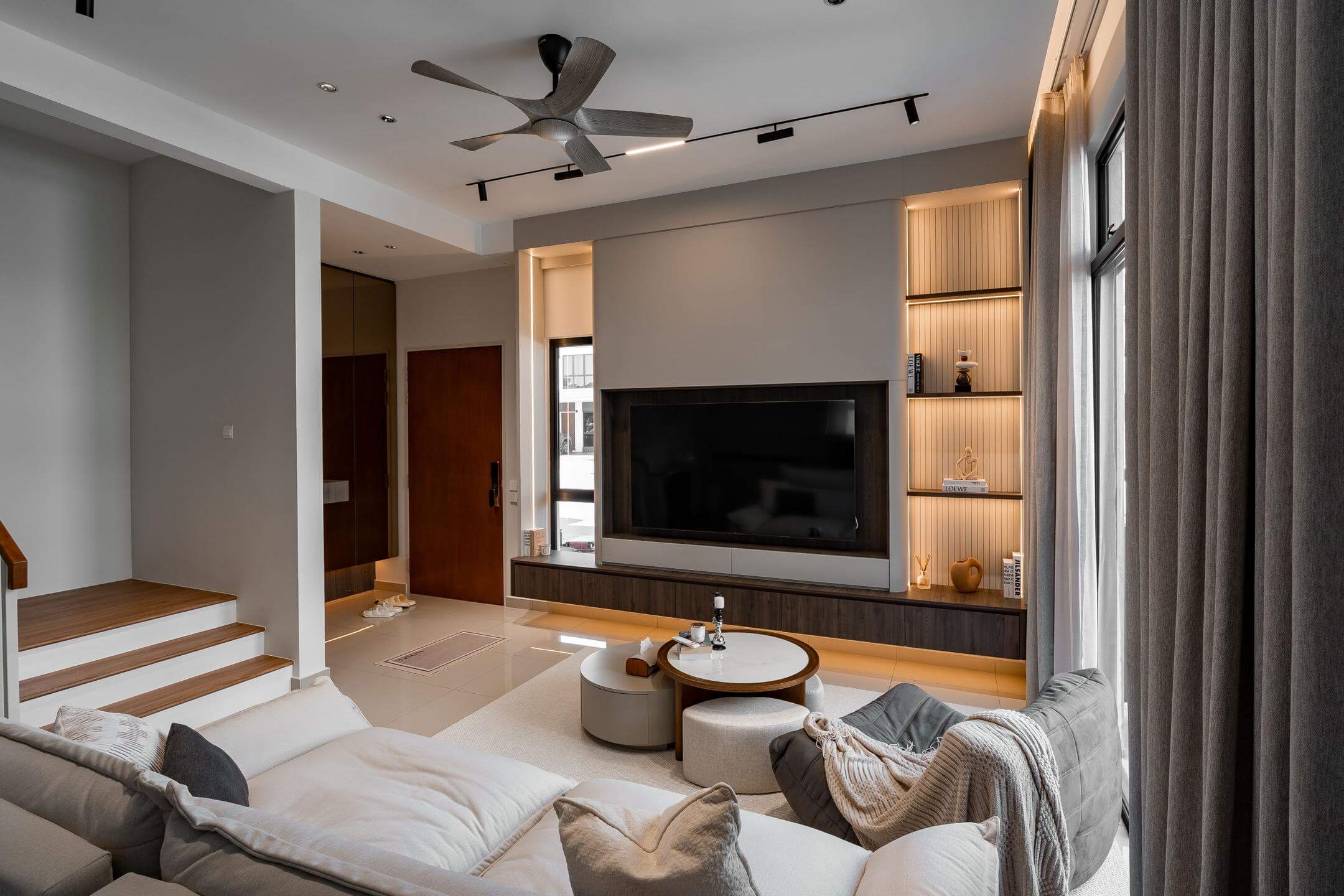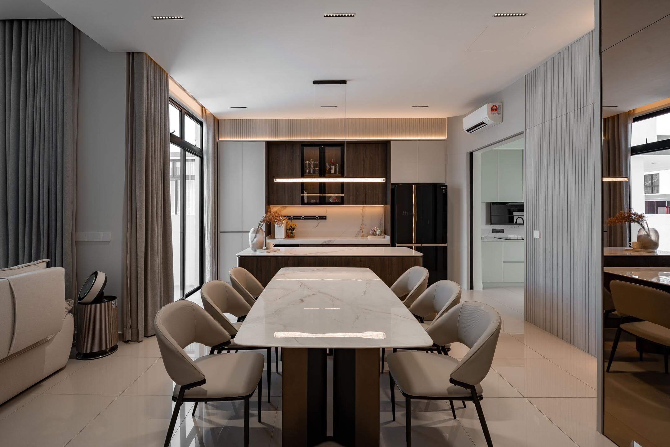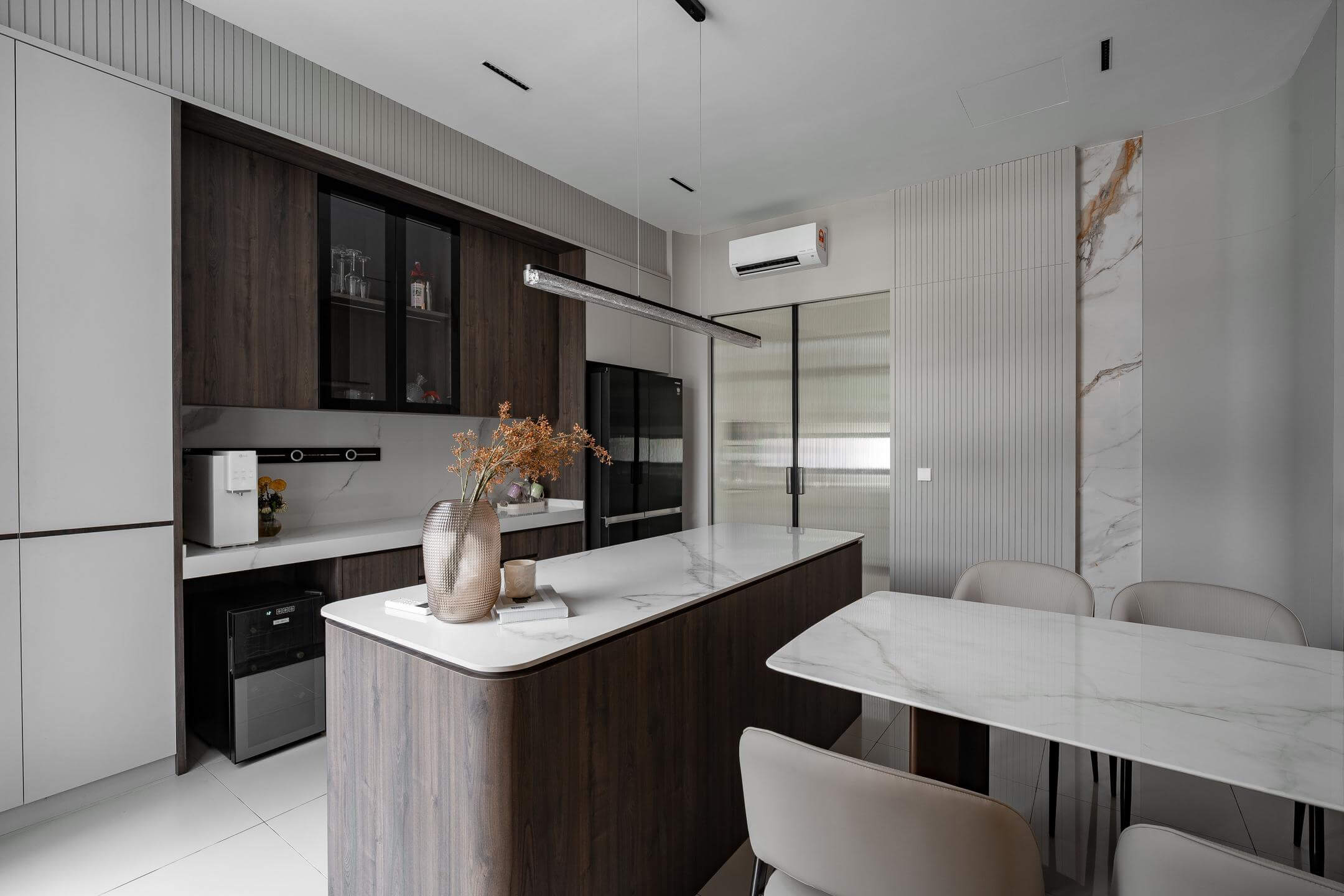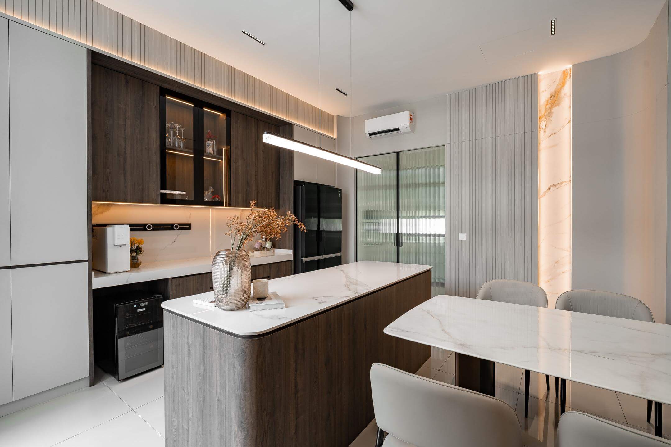 Shadow & Still is a celebration of quiet luxury — where form meets feeling, and every line carries intention. This modern interior embraces a muted palette layered with rich, dark wood textures to evoke a sense of grounded sophistication. The design is anchored in stillness, allowing light and shadow to dance across clean surfaces and sculpted forms.