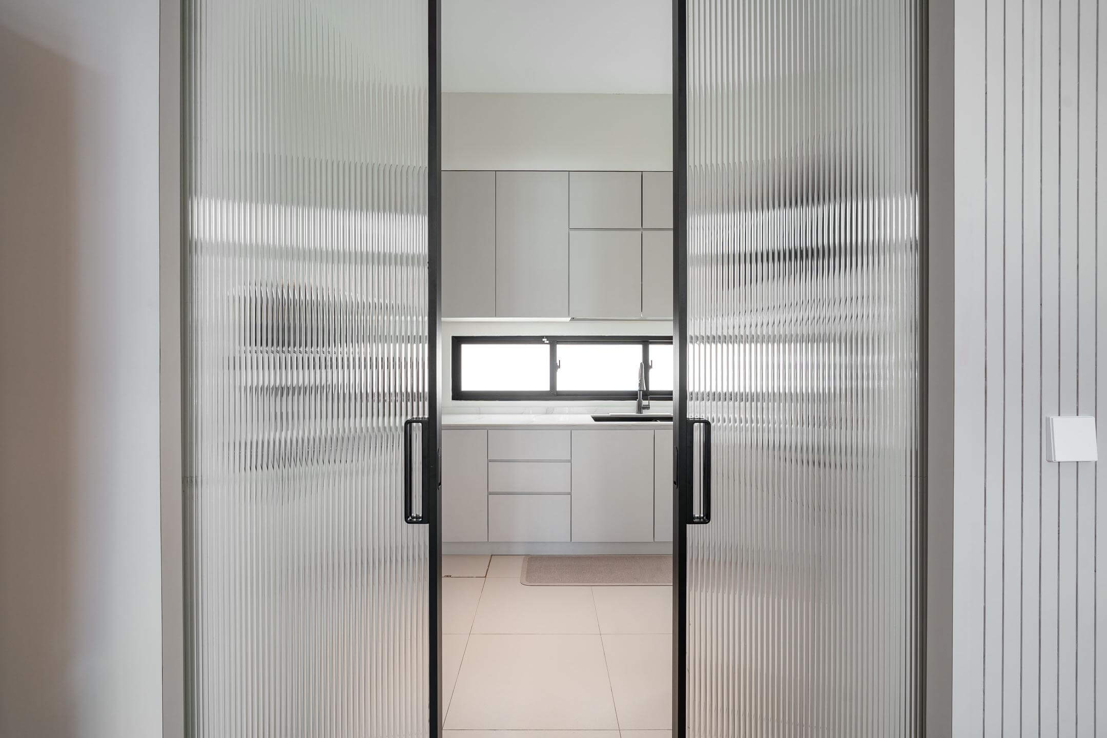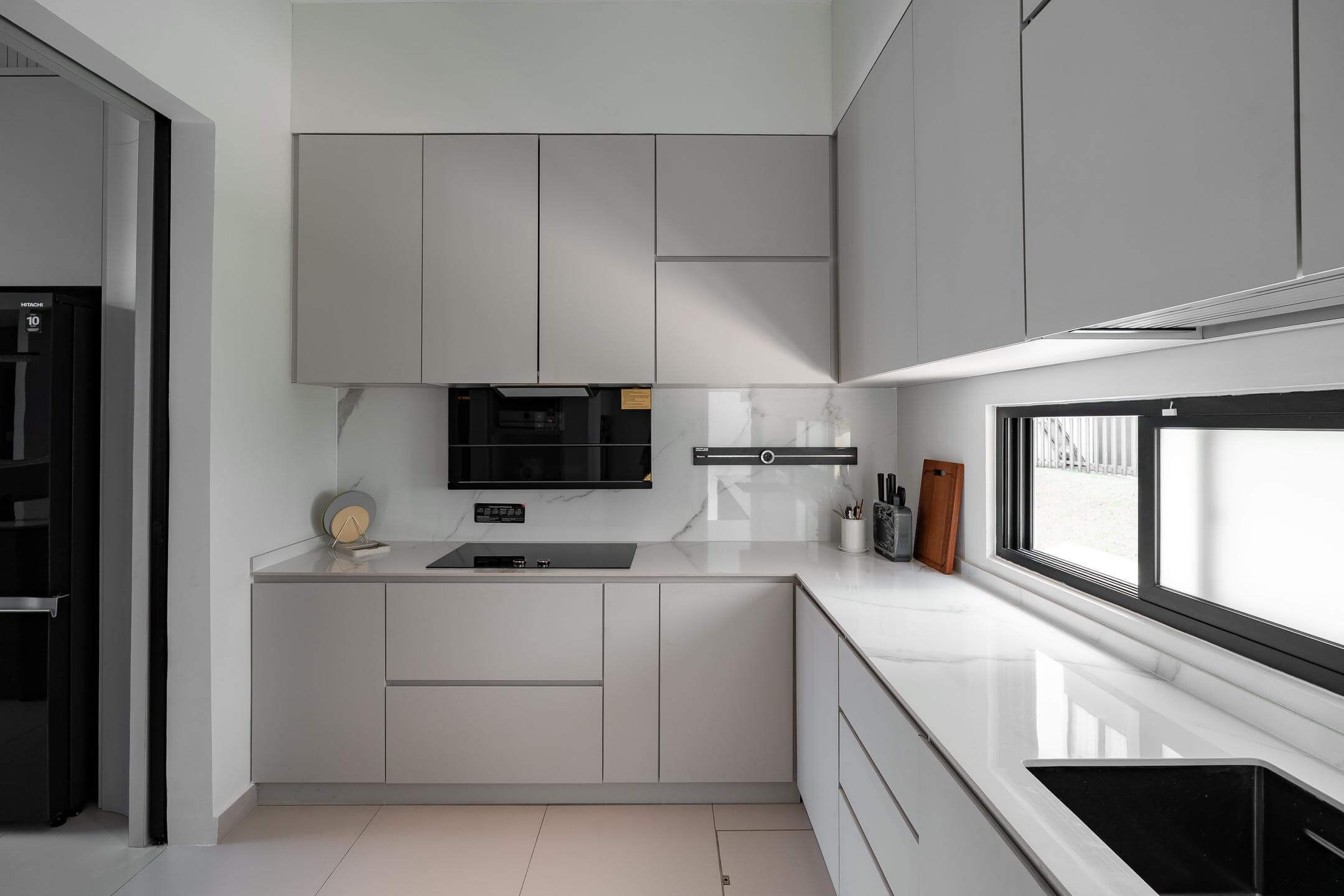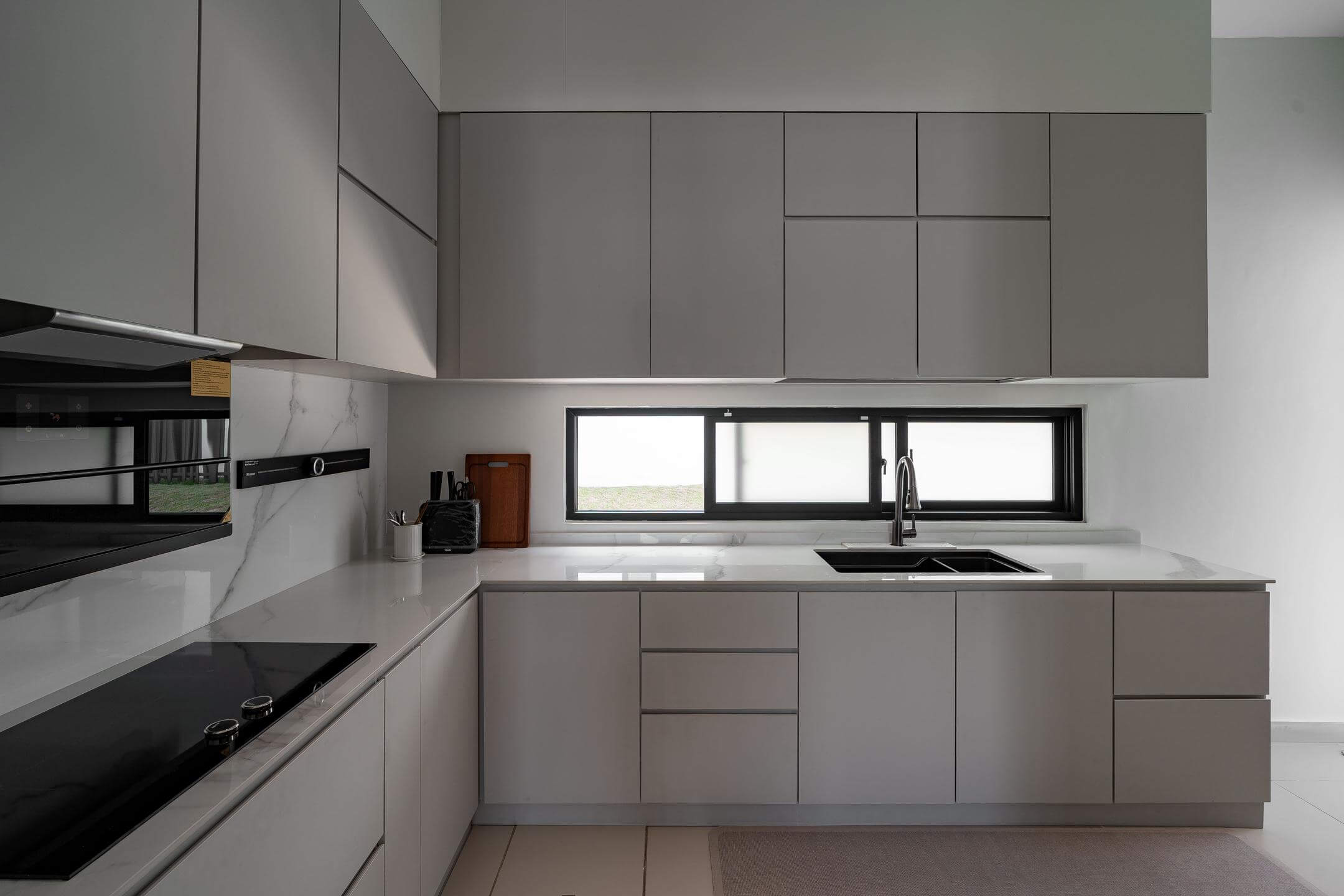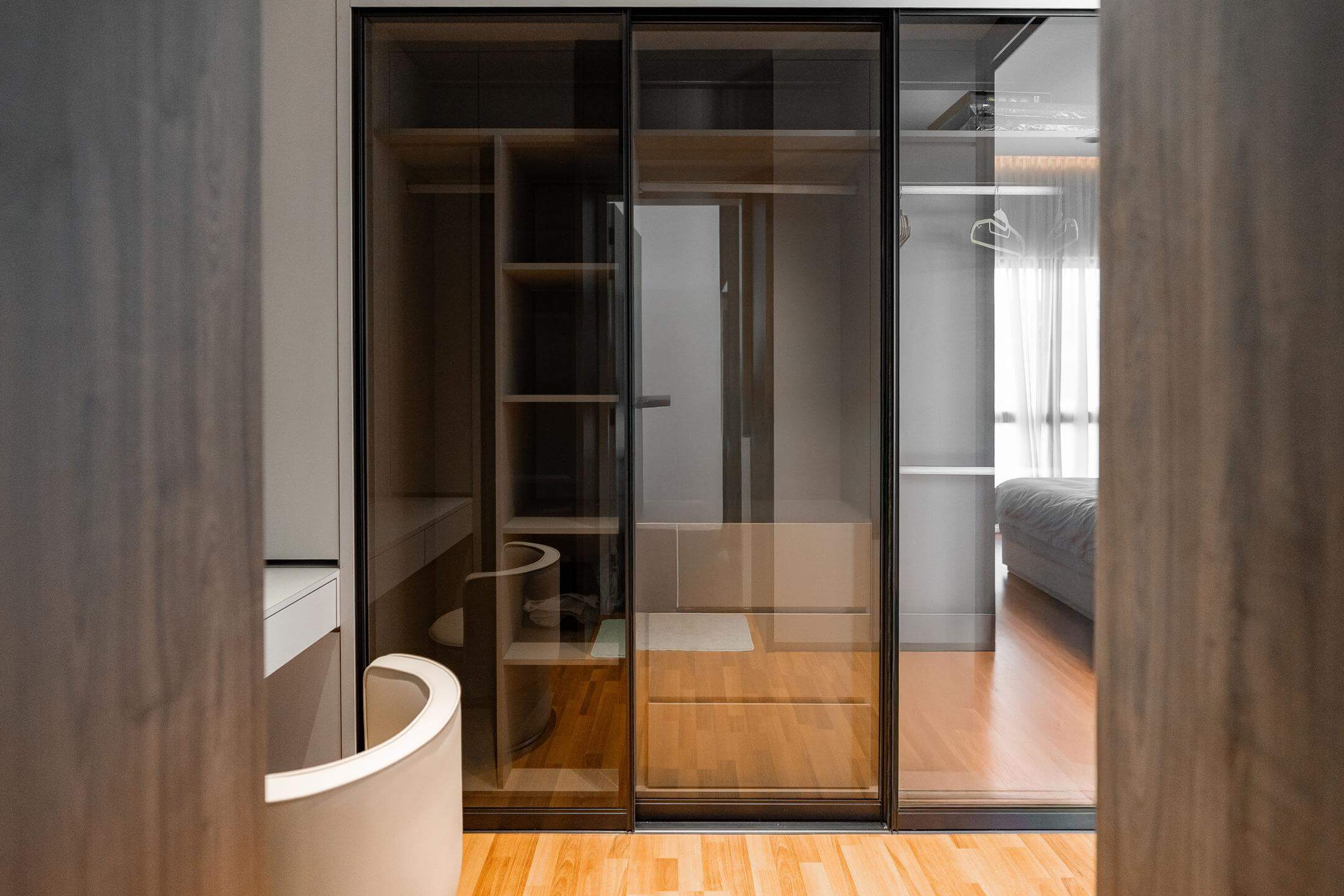 Warm dark wood tones, soft grey hues, and understated accents come together to create a space that speaks not loudly, but deeply. It is a home that feels composed — serene in its simplicity, and powerful in its restraint.