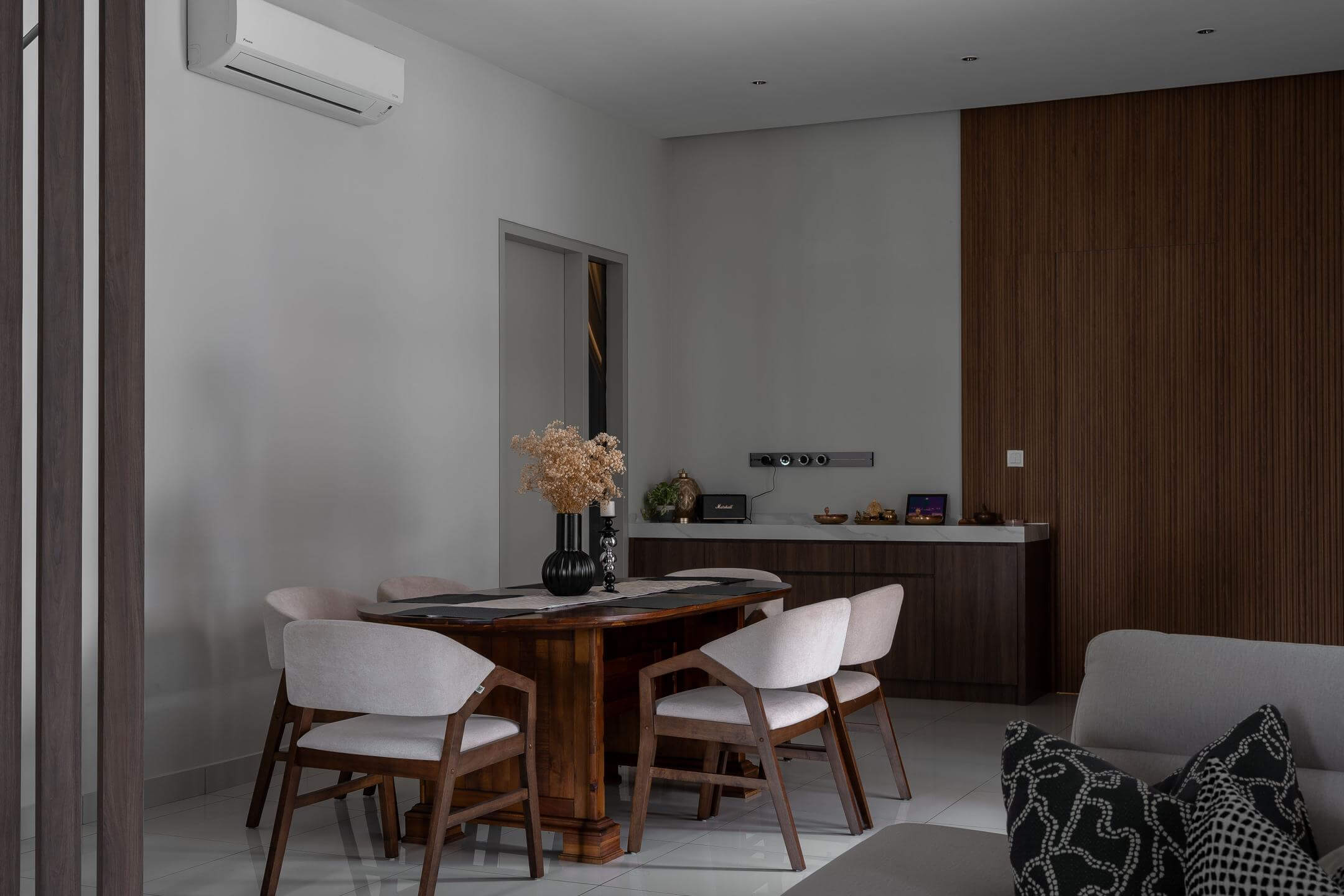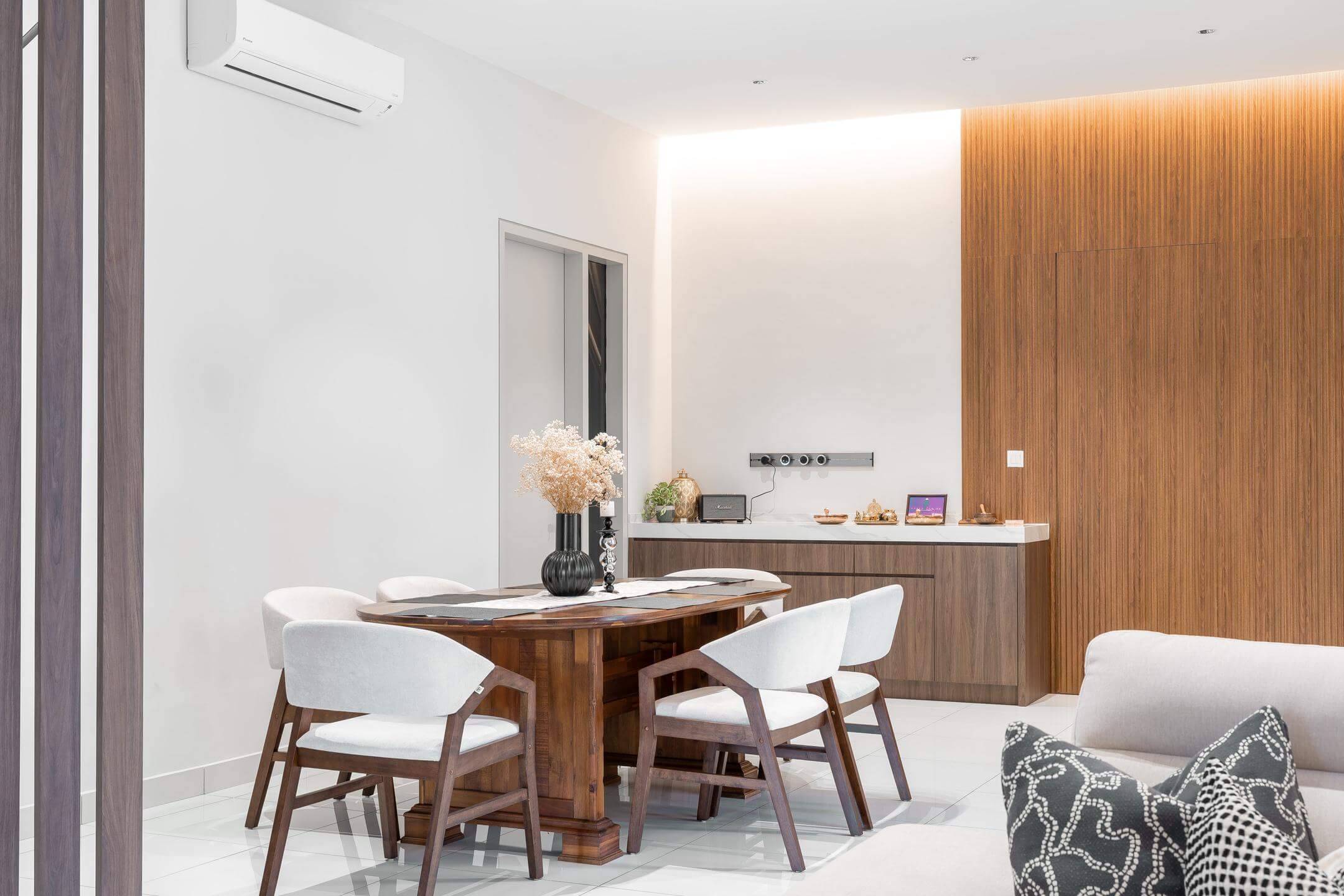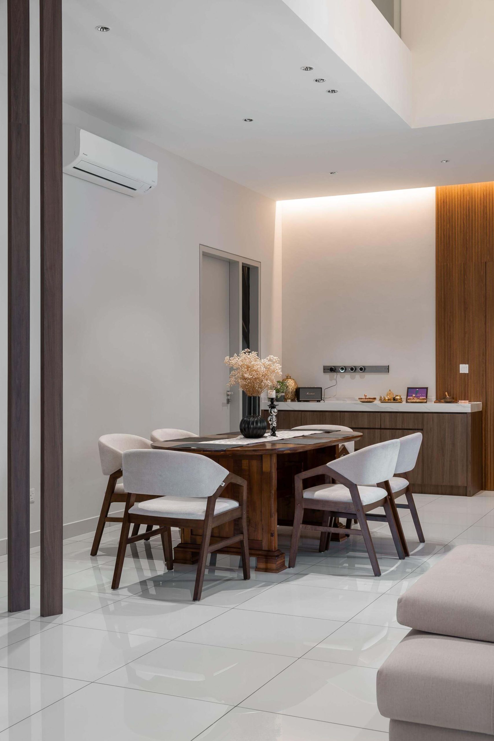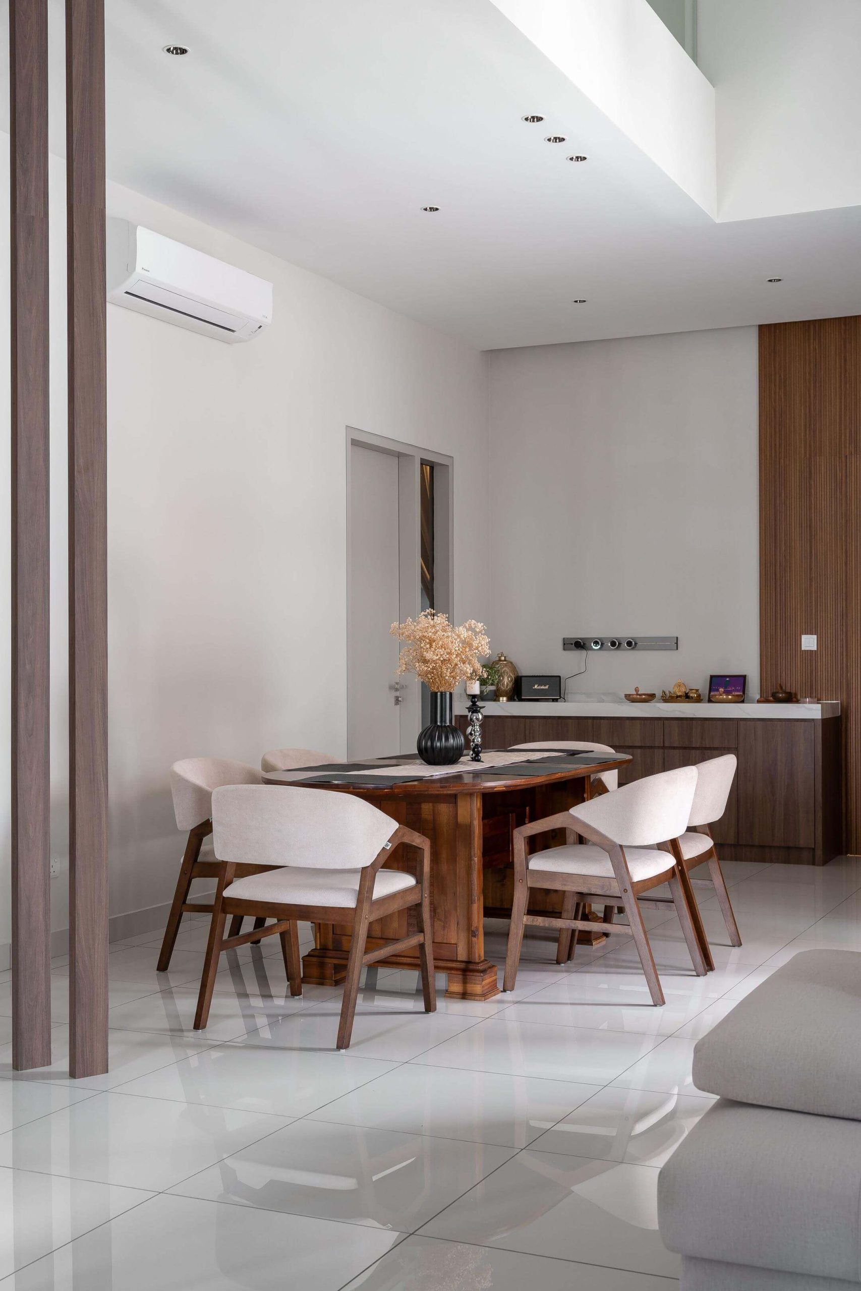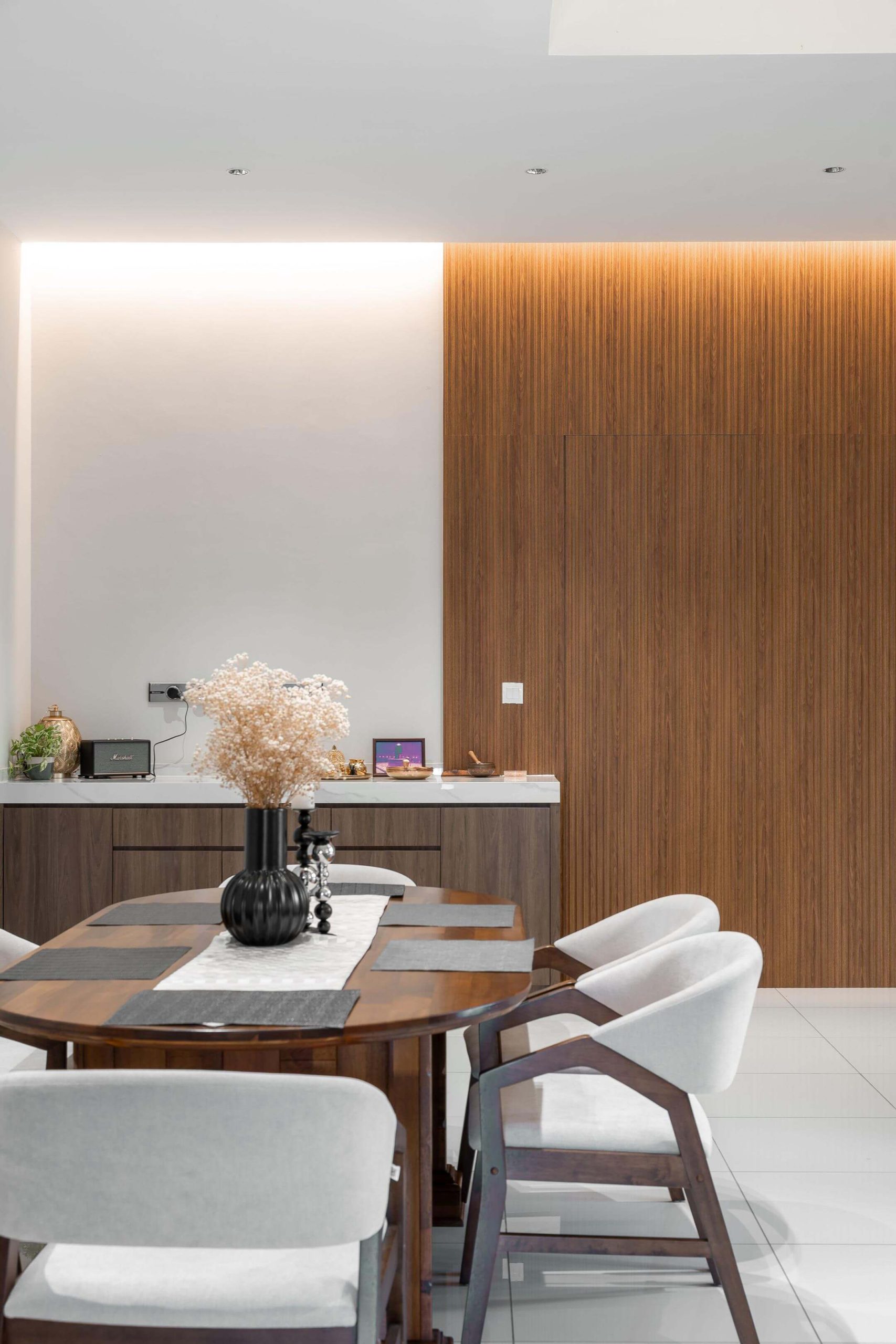 The design celebrates balance: classic forms paired with wooden textures, creating a home that feels both grounded and soulful. It’s a space where tradition meets individuality.